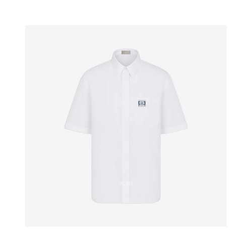 디올 Charm 화이트 코튼 포플린 반소매 셔츠