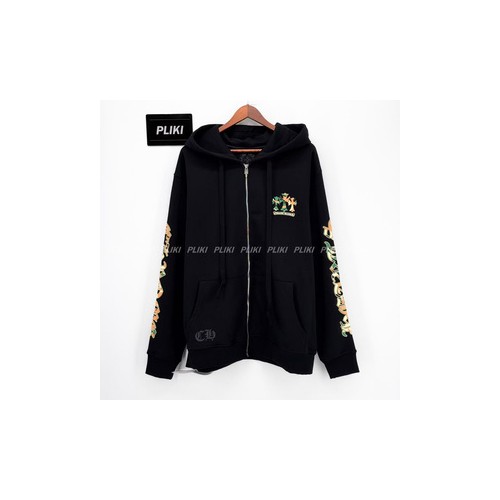 크롬하츠 홀스슈 플로랄 플리스 집업 후드