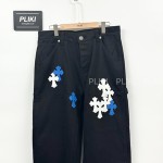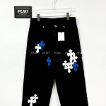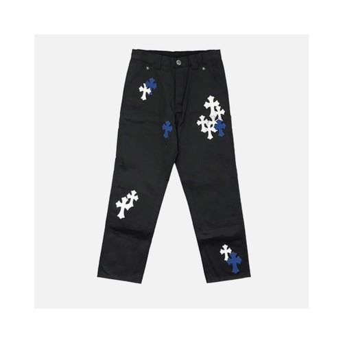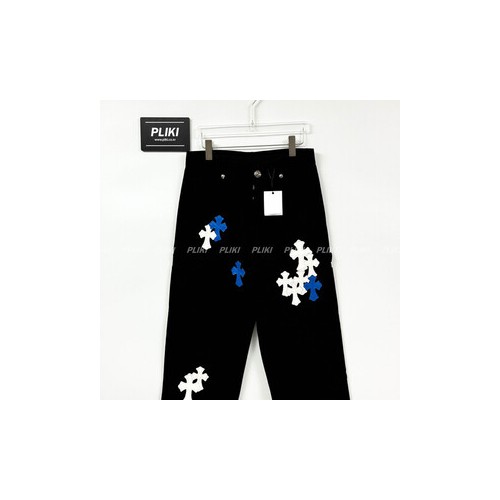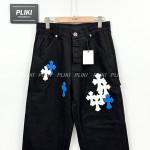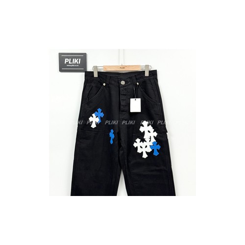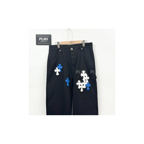 크롬하츠 CH 화이트 & 블루 레더 크로스 패치 데님 진+0원