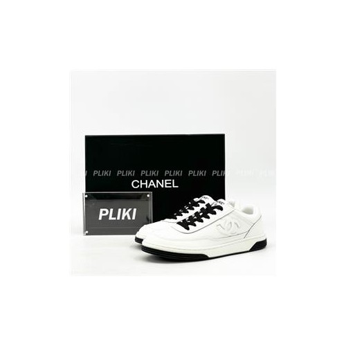 샤넬 CC로고 카프스킨 화이트 스니커즈