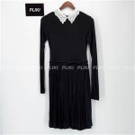 디올 블랙 테크니컬 저지 & 화이트 레이스 플리츠 쇼트 드레스+0원