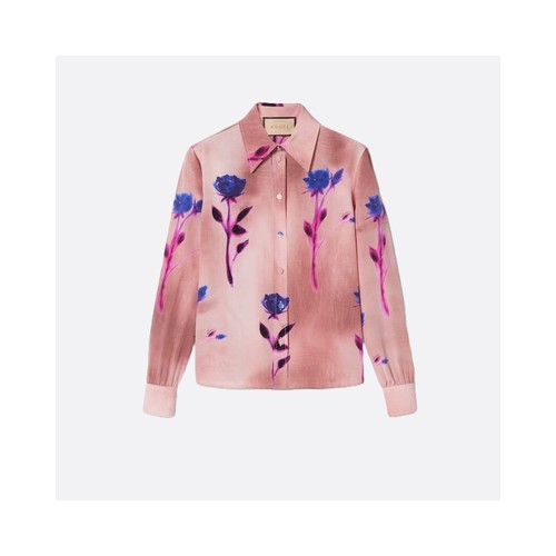 구찌 플로라 프린트 크레이프 드 신 셔츠