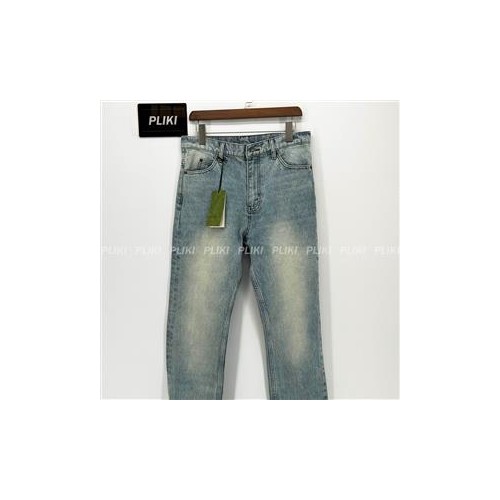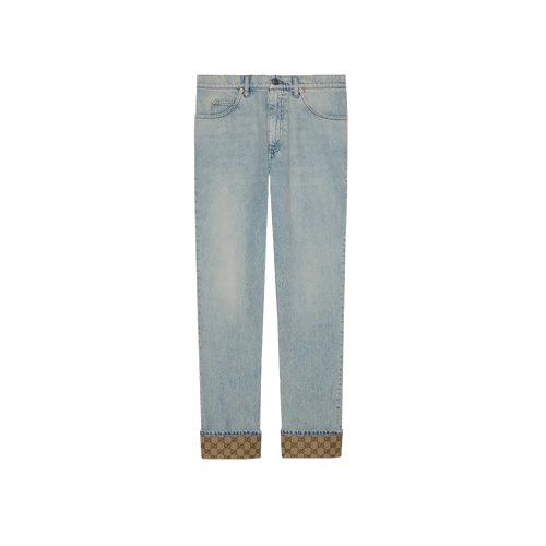 구찌 GG 턴업 디테일 워싱 데님 팬츠