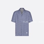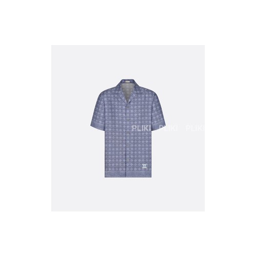 디올 블루 실크 트윌 까나쥬 반소매 셔츠
