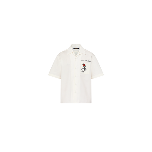 루이비통 오픈 칼라 쇼트 슬리브드 코튼 셔츠 화이트