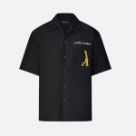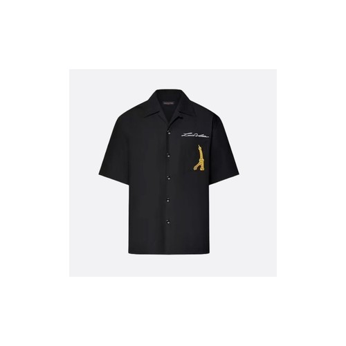 루이비통 오픈 칼라 쇼트 슬리브드 코튼 셔츠 블랙