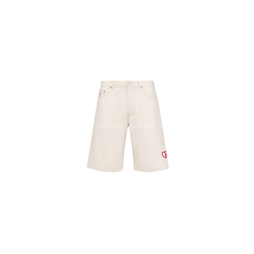 디올 CD 하트 버뮤다 화이트 코튼 캔버스 쇼츠