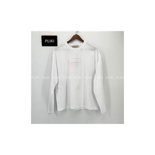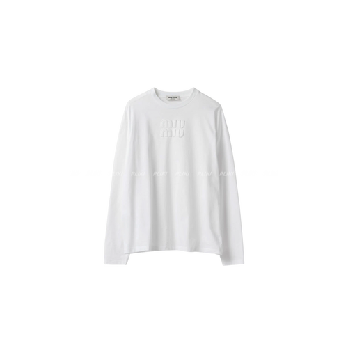 미우 미우 자수 로고 롱슬리브 코튼 티셔츠 화이트