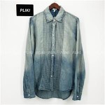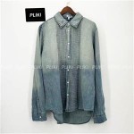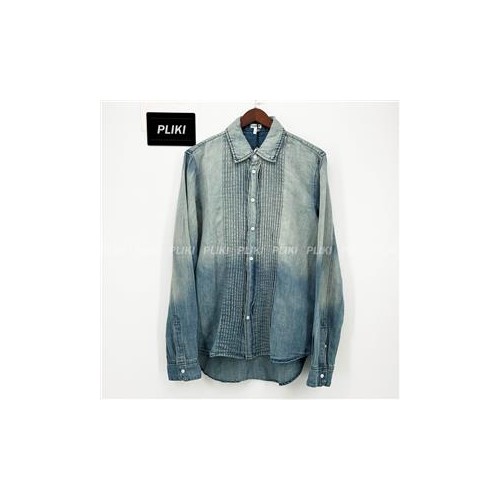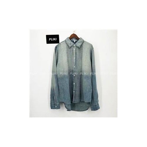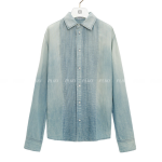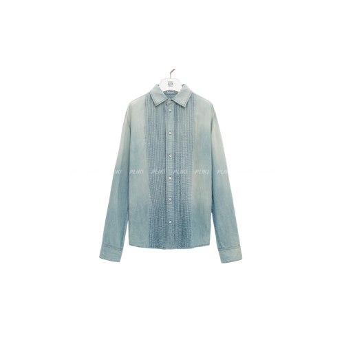 로에베 플리츠 셔츠 코튼 & 린넨 블리치드 인디고