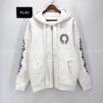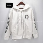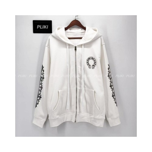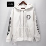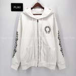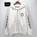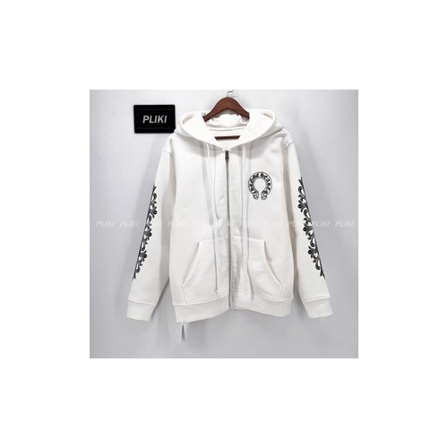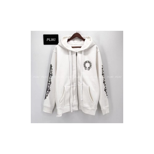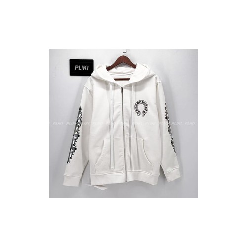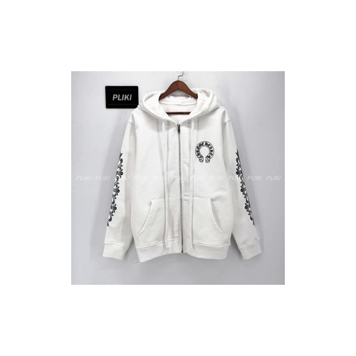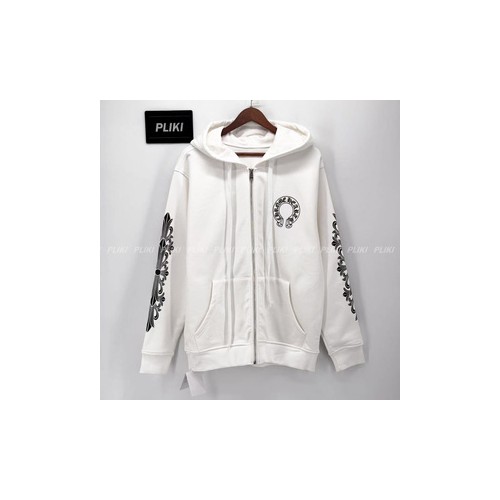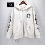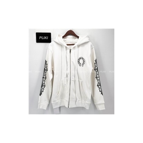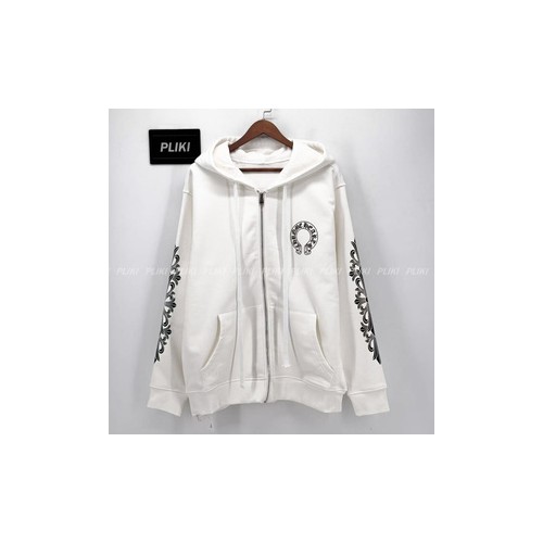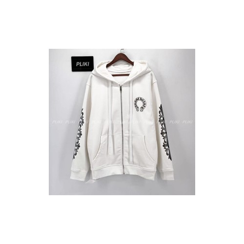 크롬하츠 홀스슈 플로랄 플리스 집업 후드 화이트