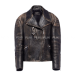 프라다 페이디드 가죽 바이커 재킷