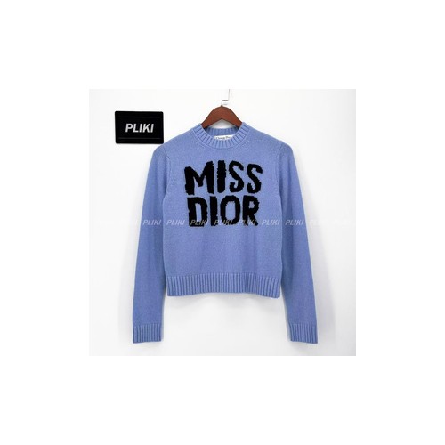 디올 블랙 Miss Dior 그래피티 모티브 페일 블루 캐시미어 실크 니트+0원
