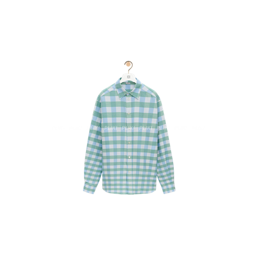 로에베 체크 코튼 셔츠 블루