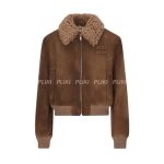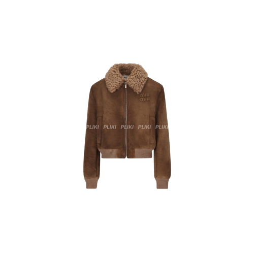 미우미우 로고 패치 시어링 카라 스웨이드 자켓