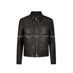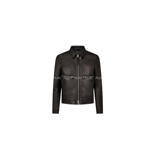 톰 포드 그레인 레더 컨트레스트 집 블루종