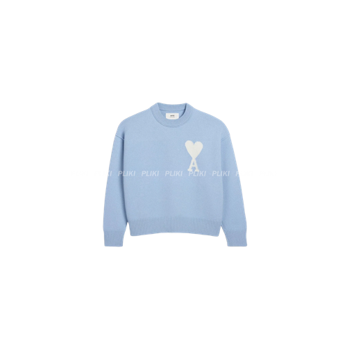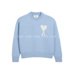 아미 빅 하트 로고 펠트 메리노 울 스웨터 캐시미어 블루 오프 화이트+0원