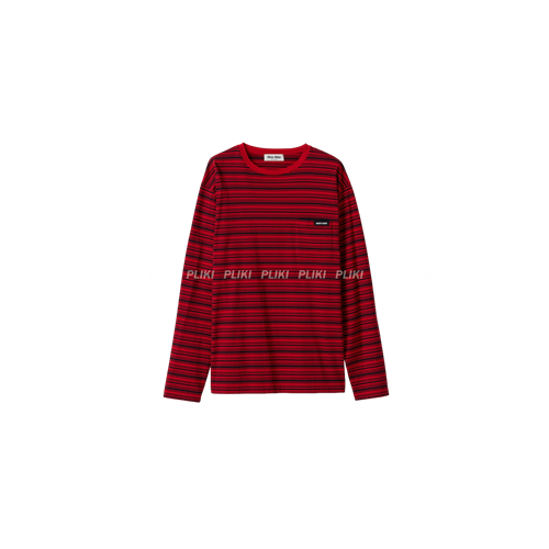 미우미우 롱 슬리브 코튼 저지 티셔츠
