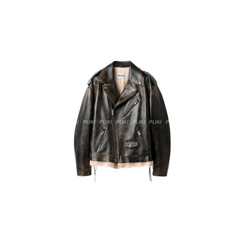 미우미우 나파 레더 바이커 자켓 머스타드 블랙
