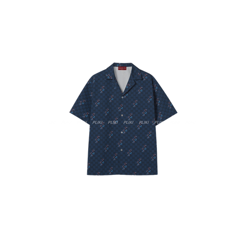 구찌 프린트 코튼 립스탑 셔츠