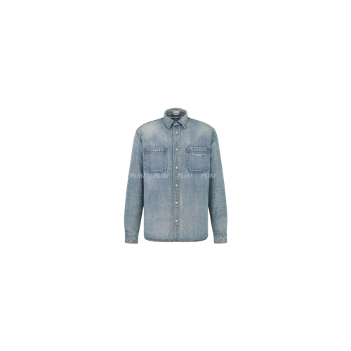 디올 블루 코튼 데님 체크 안감 오버셔츠