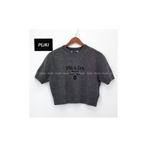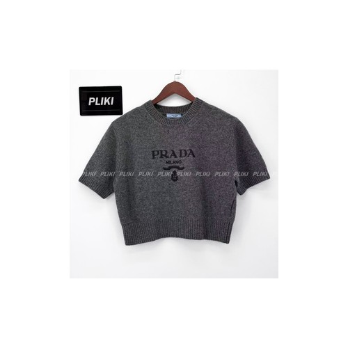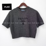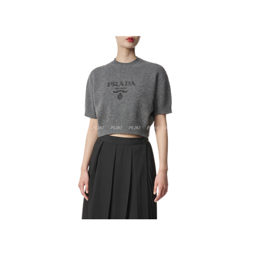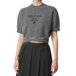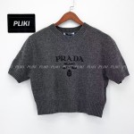 프라다 여성 로고 크롭 반소매 니트