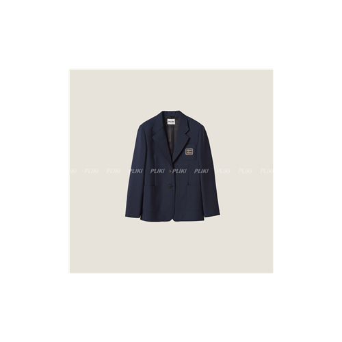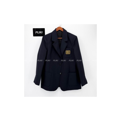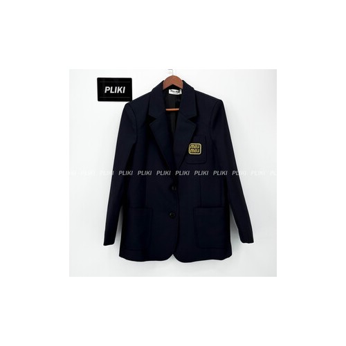 미우미우 싱글브레스트 모헤어 재킷 네이비 블루 / 옐로우 골드+0원
