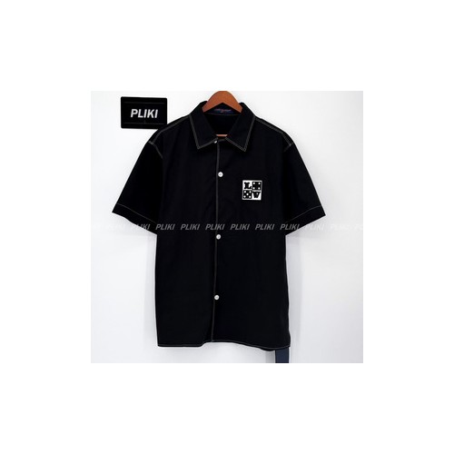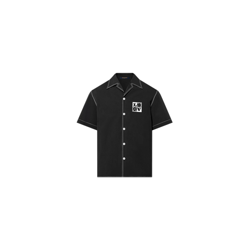 루이비통 엠브로이더드 쇼트 슬리브드 코튼 셔츠 블랙