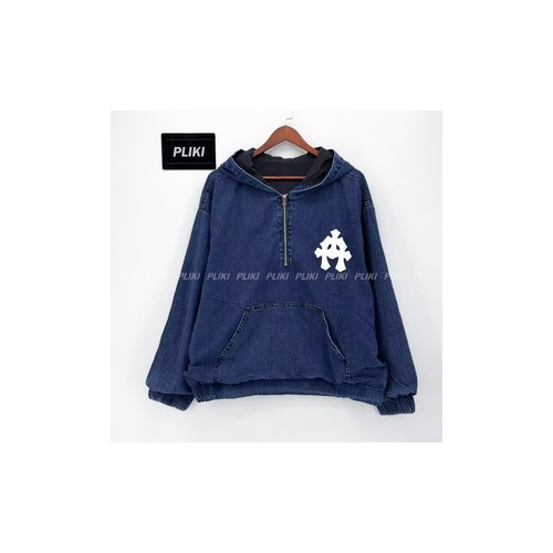크롬하츠 레더 세미터리 트리플 크로스 데님 쿼터 집업 자켓+0원