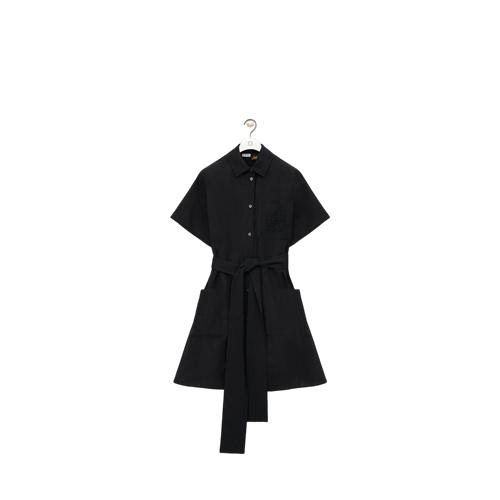 로에베 비스코스 린넨 셔츠 드레스 블랙