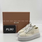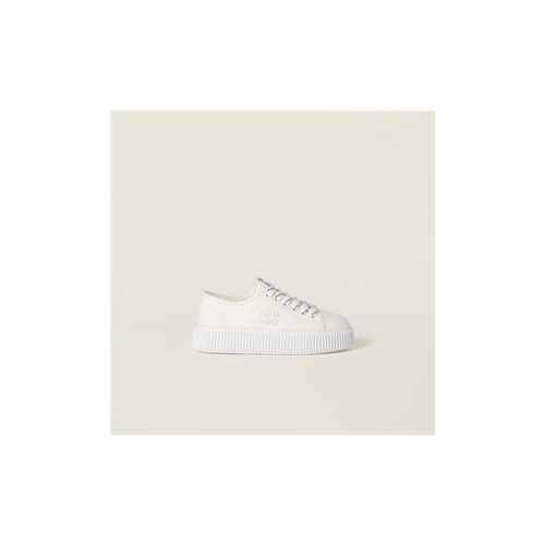 미우미우 로고 장식 데님 스니커즈 아이보리