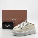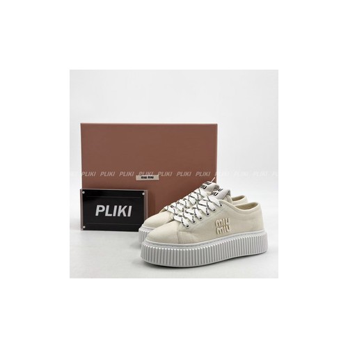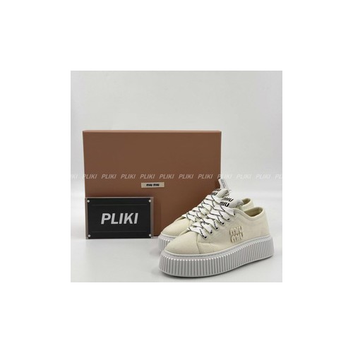 미우미우 로고 장식 데님 스니커즈 베이지