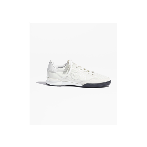 샤넬 스니커즈 라미네이티드 카프스킨 실버 & 화이트