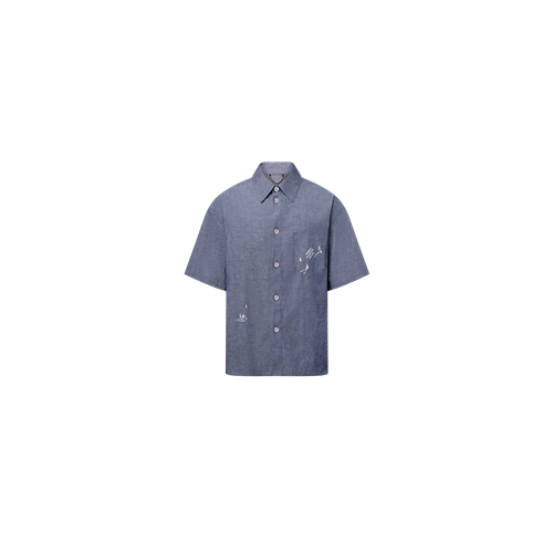 루이비통 엠브로이더드 샴브레이 반팔 셔츠