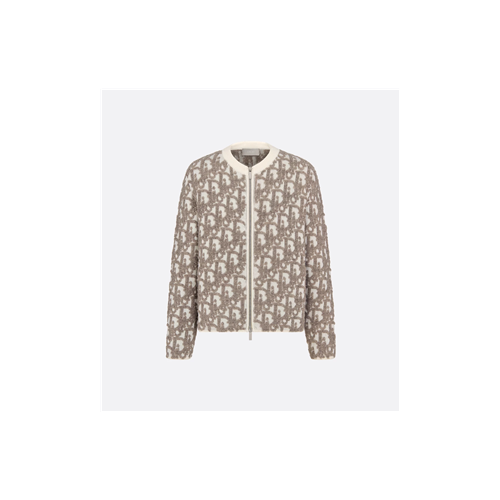 디올 오블리크 가디건 화이트 울 코튼 블렌드 자카드