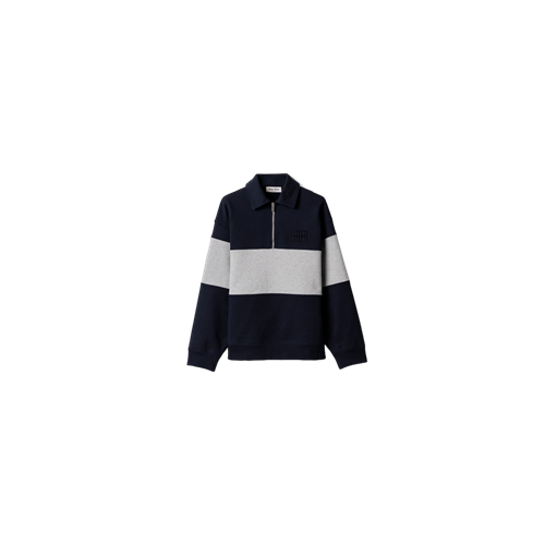미우미우 하프 집업 코튼 스웨트셔츠 블루 그레이