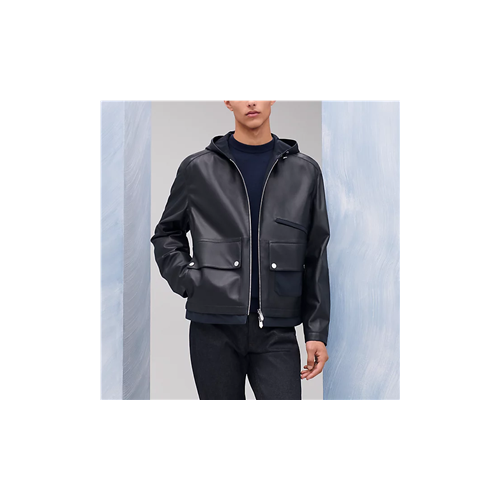 에르메스 가죽 디테일 양면 지퍼 후드 재킷