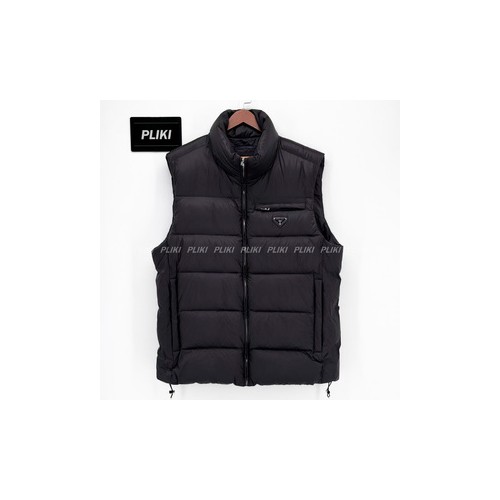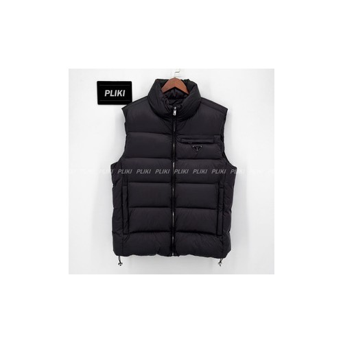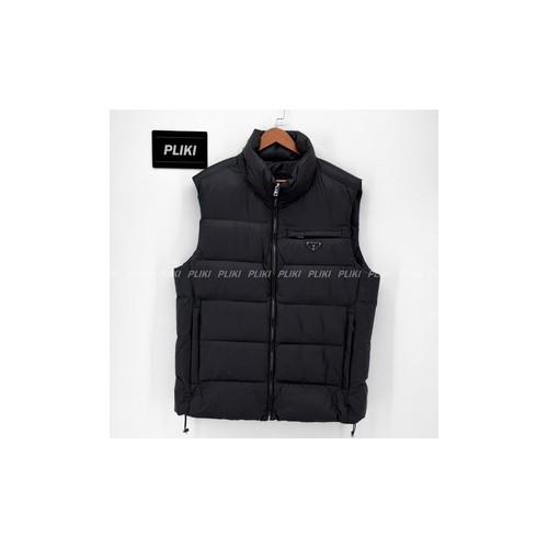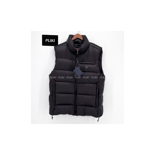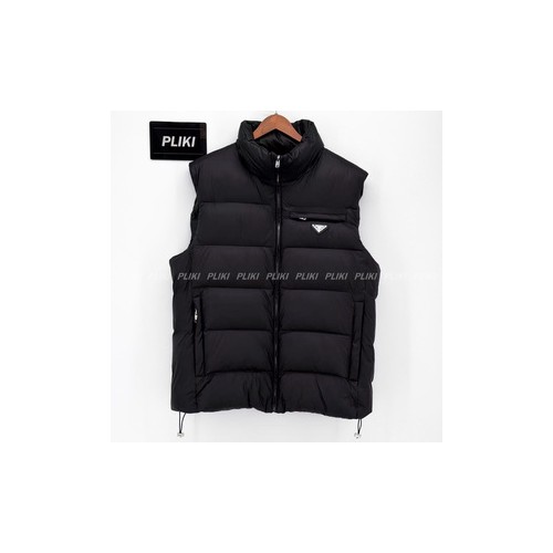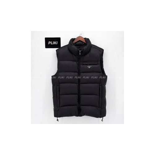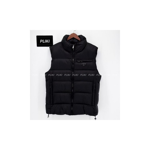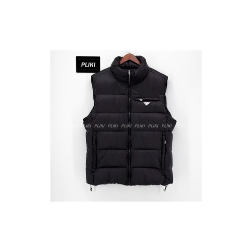 프라다 트라이앵글 로고 다운 베스트 블랙