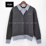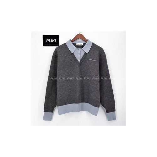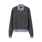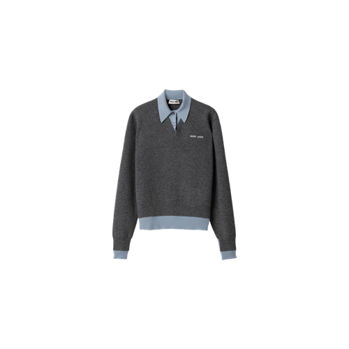 미우 미우 캐시미어 앤 울 폴로 스웨터 슬레이트 그레이 에비에이터 블루+0원