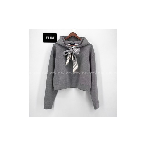루이비통 크롭드 모노그램 스카프 후디 그레이