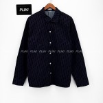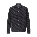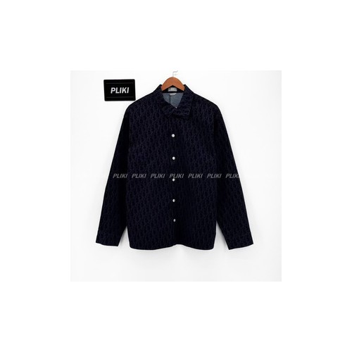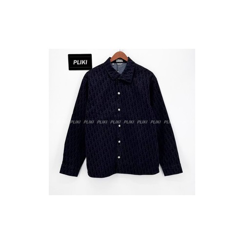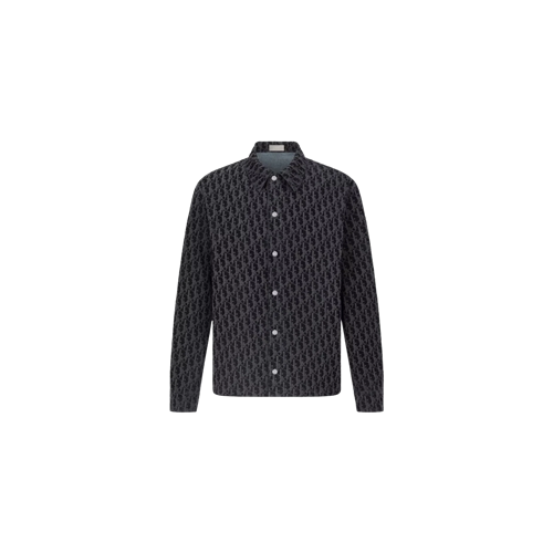 디올 오블리크 코튼 블렌드 트윌 오버셔츠 블루