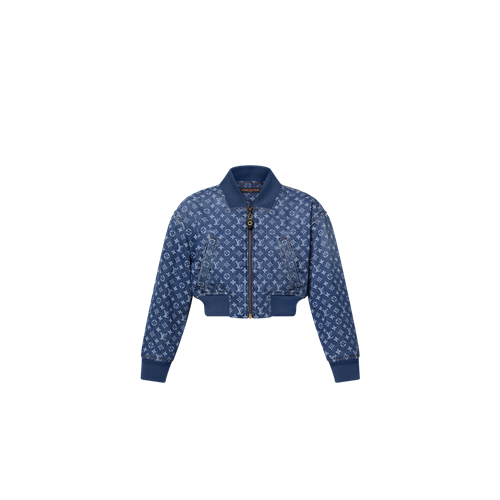 루이비통 크롭 모노그램 데님 봄버 재킷