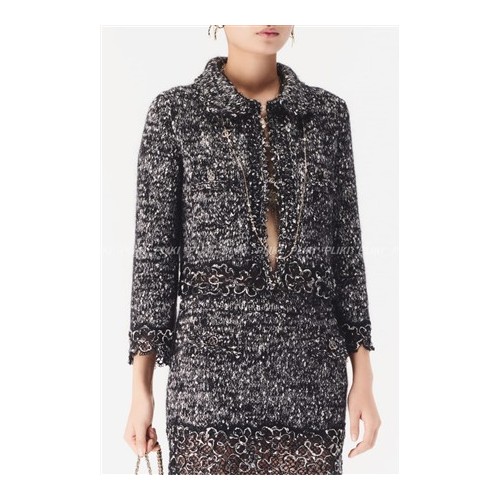 샤넬 자수 장식 코튼 재킷 모헤어 블랙