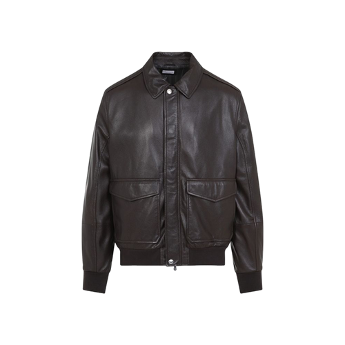 브루넬로 쿠치넬리 포켓 디테일 레더 봄버 자켓