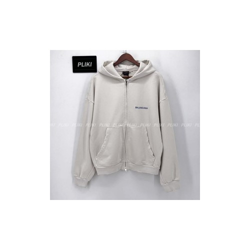 발렌시아가 백 레귤러 핏 집업 후디 더티 화이트/블루+0원