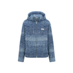 디올 Christian Dior Paris 라벨 후드 블루종 재킷 블루 코튼 자카드+0원