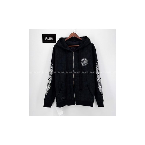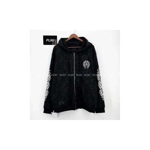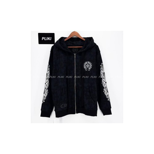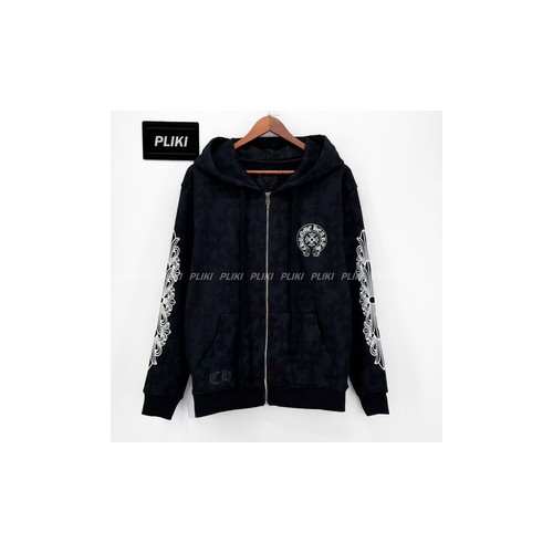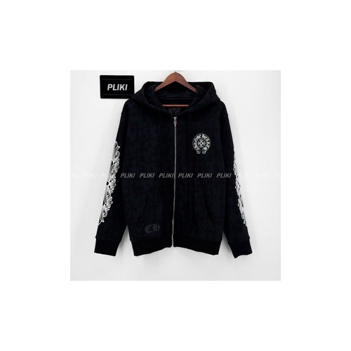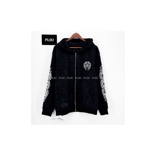 크롬하츠 세메터리 크로스 프린트 풀오버 후드 집업 블랙+0원