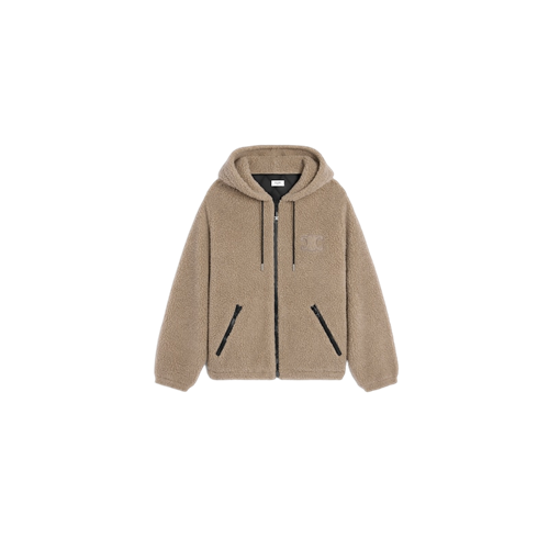 셀린느 후드 재킷 - 울 코튼 플리스 베이지 블랙