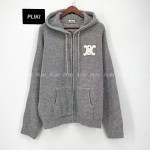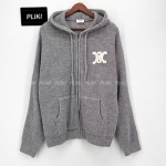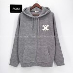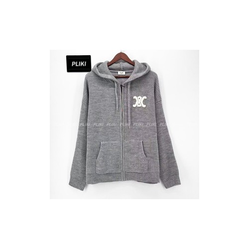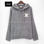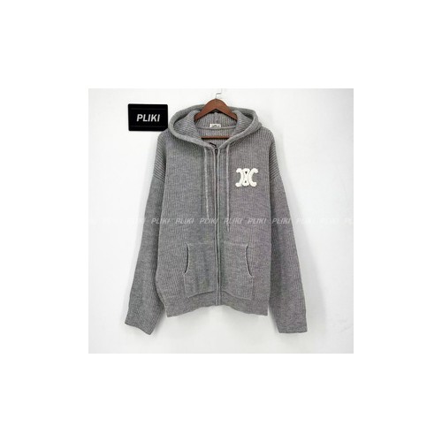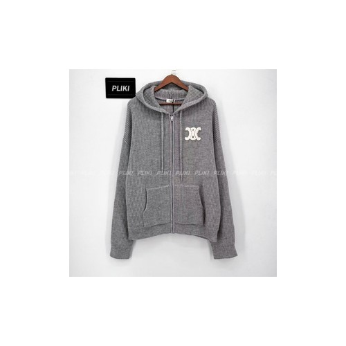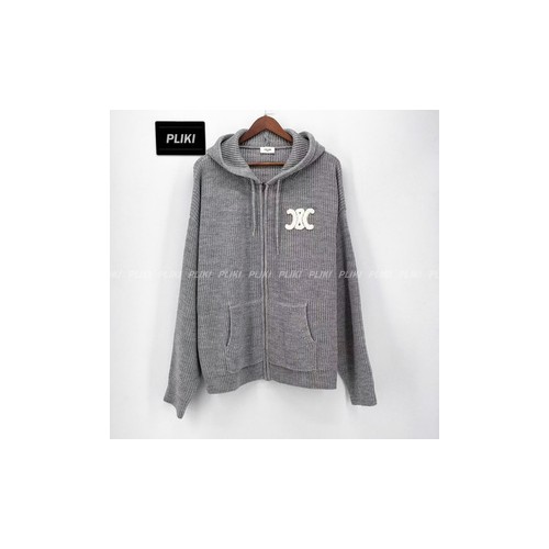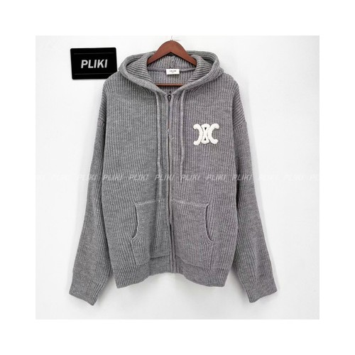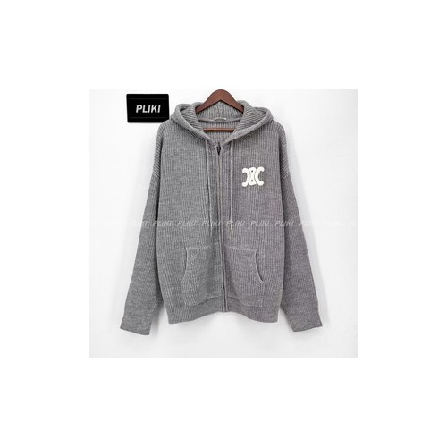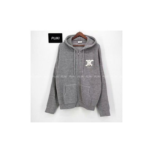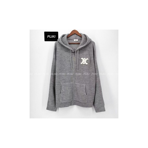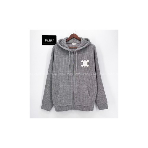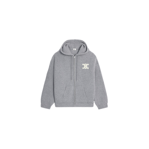 셀린느 후드 가디건 - 리브드 울 미디엄 그레이