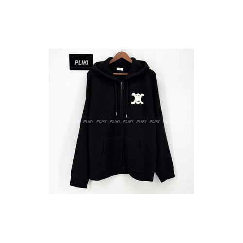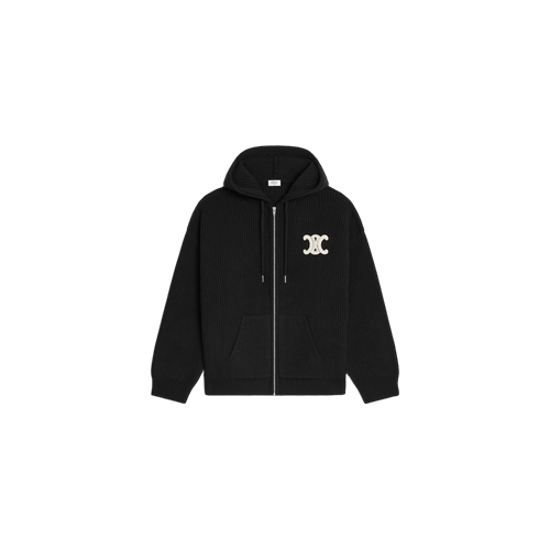 셀린느 후드 가디건 - 리브드 울 블랙
