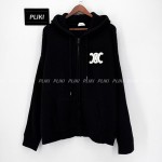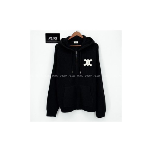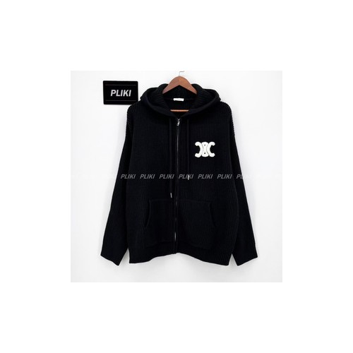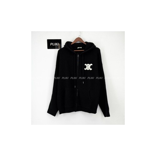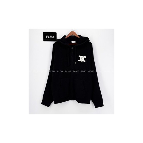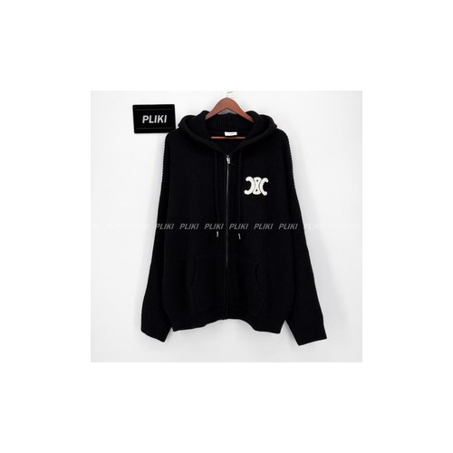 셀린느 후드 가디건 - 리브드 울 미디엄 그레이
